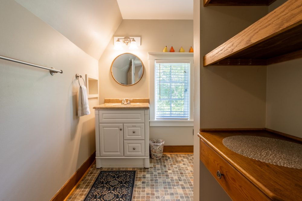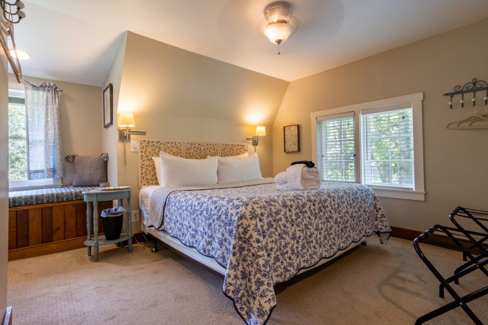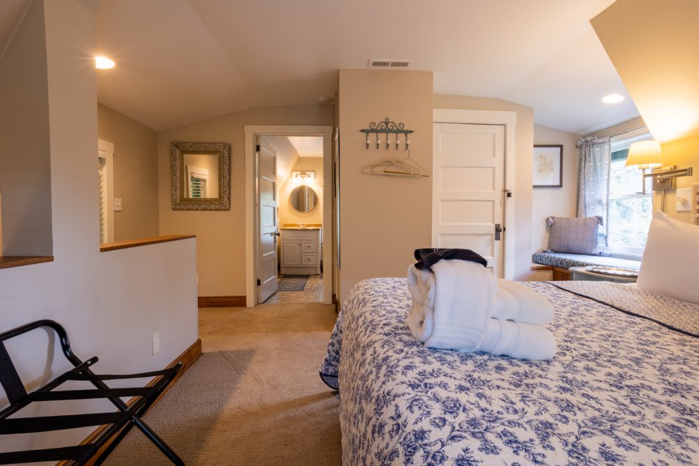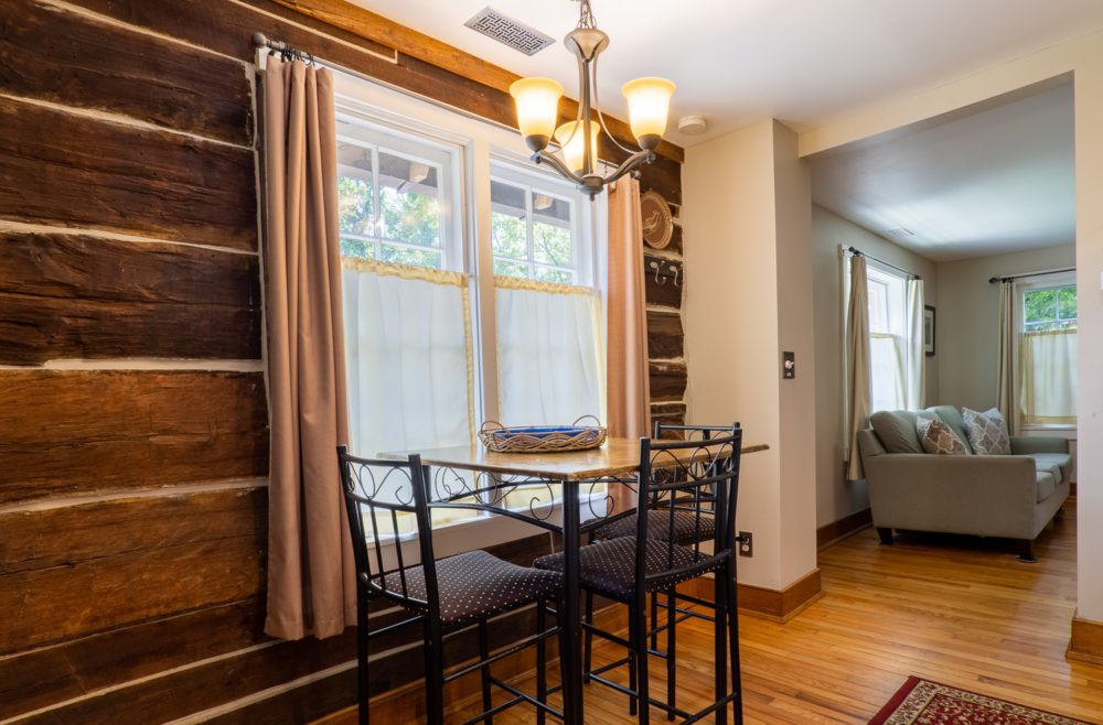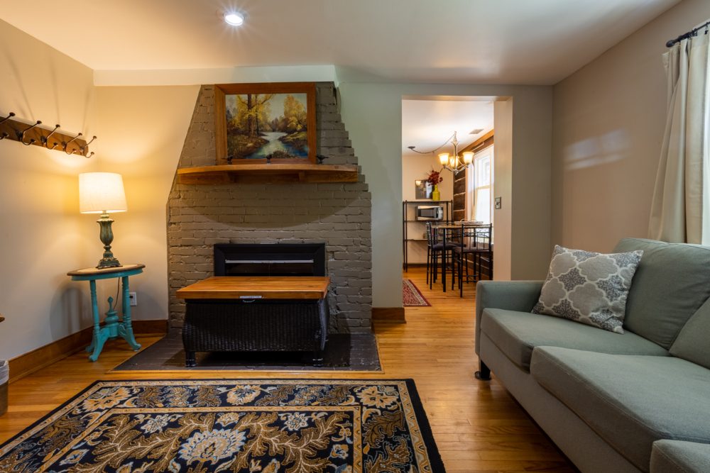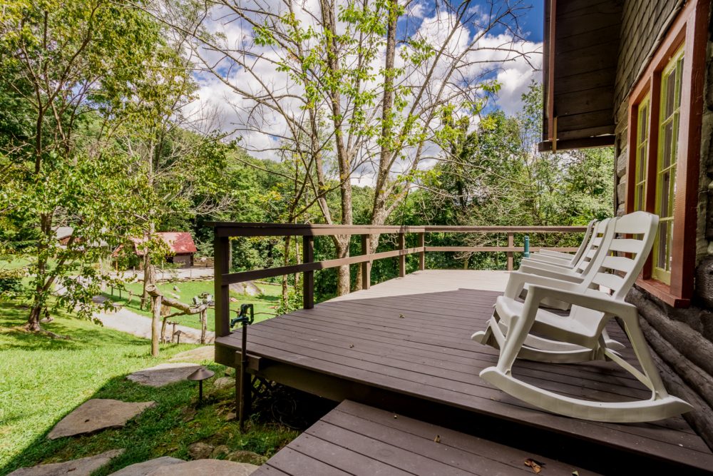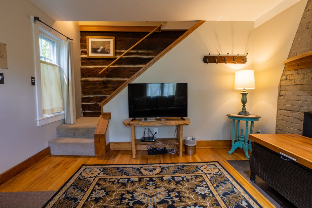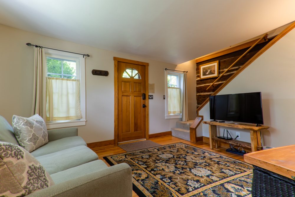 The Chestnut Cabin is nestled amongst rock outcroppings, periwinkle and native plants. The Cabin gets its name from the original hand hewn chestnut logs that make up the lower half of the building. Enjoy the cozy living room that includes a queen size pullout bed. Upstairs in the lofted king bedroom, take some time to read and relax in the corner window seat. Relax on the wraparound deck overlooking our rustic barn.