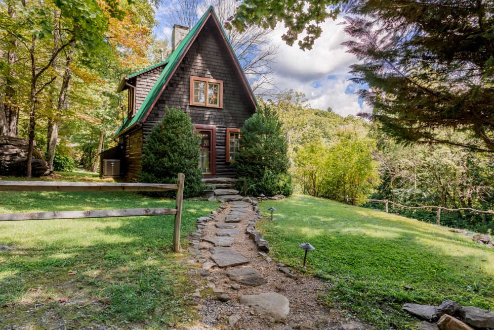 The Chestnut Cabin is nestled amongst rock outcroppings, periwinkle and native plants. The Cabin gets its name from the original hand hewn chestnut logs that make up the lower half of the building. Enjoy the cozy living room that includes a queen size pullout bed. Upstairs in the lofted king bedroom, take some time to read and relax in the corner window seat. Relax on the wraparound deck overlooking our rustic barn.